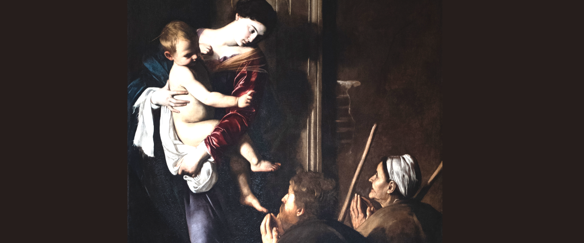 Le tableau de « La Madone des pèlerins » (1604), a été peint par Le Caravage, artiste italien réputé pour son traitement du “clair-obscur”.