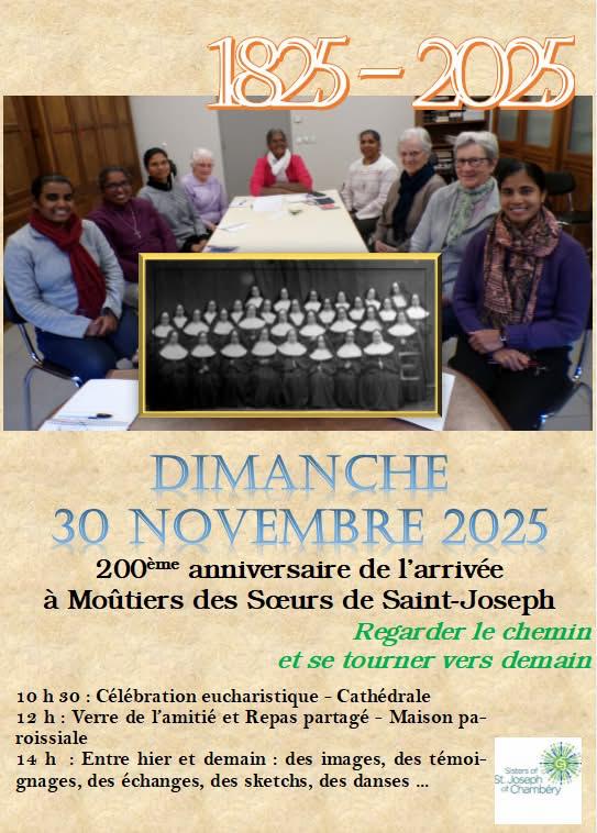 DIMANCHE 30 NOVEMBRE 2025 A 10:30 - 200EME ANNIVERSAIRE DE L’ARRIVEE DES SOEURS DE ST JOSEPH A MOUTIERS